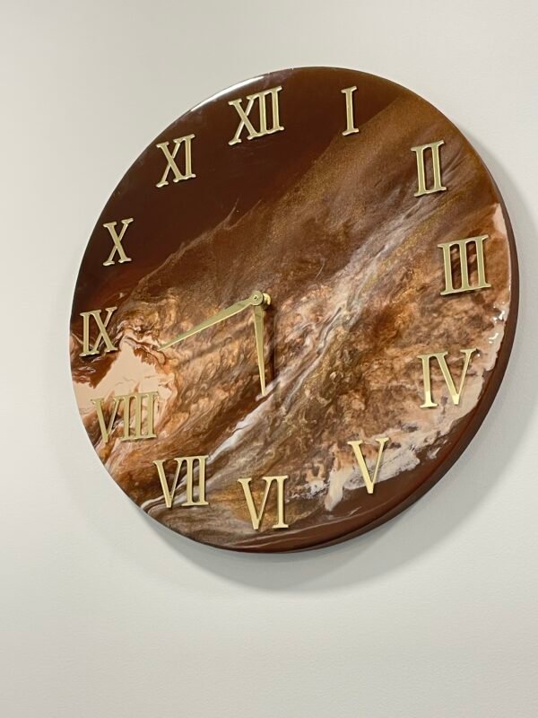 Naudodami aukštos kokybės epoksidinę dervą, sukūrėme unikalų produktą, kuris puikiai tinka įvairiems interjero stiliams. Epoksidinė derva suteikia laikrodžiui išskirtinį blizgesį ir atsparumą.