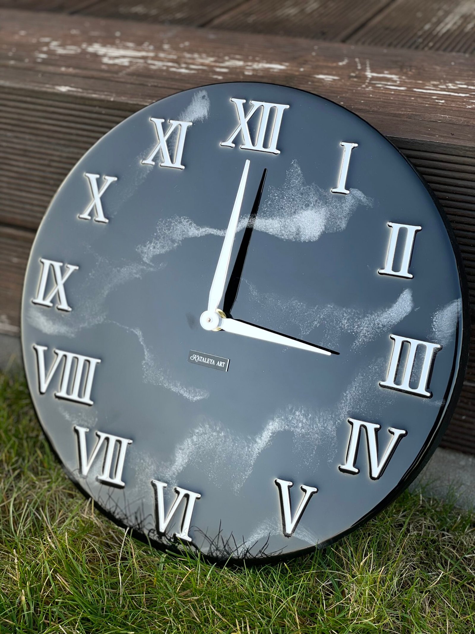 Naudodami aukštos kokybės epoksidinę dervą, sukūrėme unikalų produktą, kuris puikiai tinka įvairiems interjero stiliams. Epoksidinė derva suteikia laikrodžiui išskirtinį blizgesį ir atsparumą.
